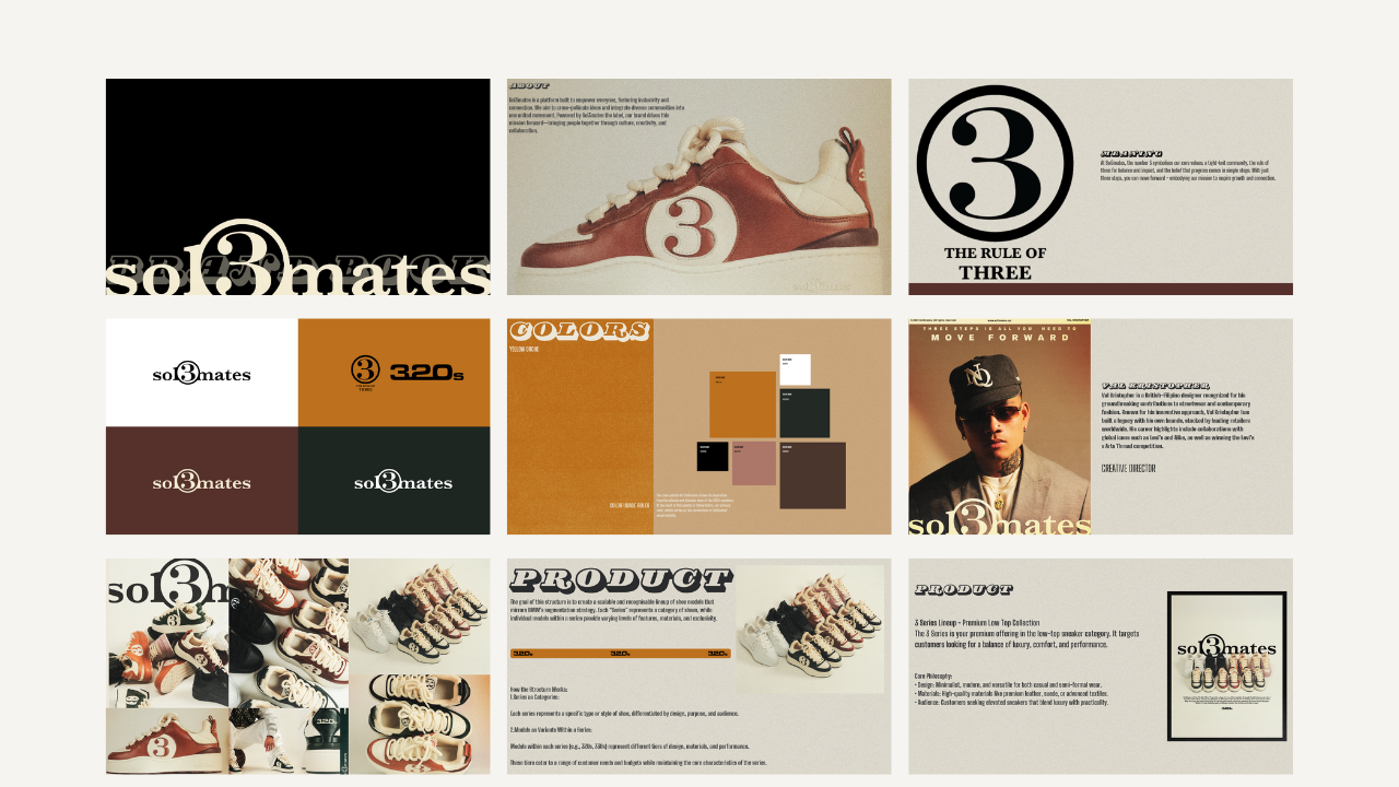 The brand SOL3MATES underwent a visual identity refresh and full rebrand ahead of their new sneaker launch. Our goal was to create visually compelling assets for social media and design a lookbook that reflected the updated brand direction. Aligned with the creative director’s vision, I edited the campaign imagery, crafted the graphic compositions, integrated the copy, and designed the full lookbook layout.